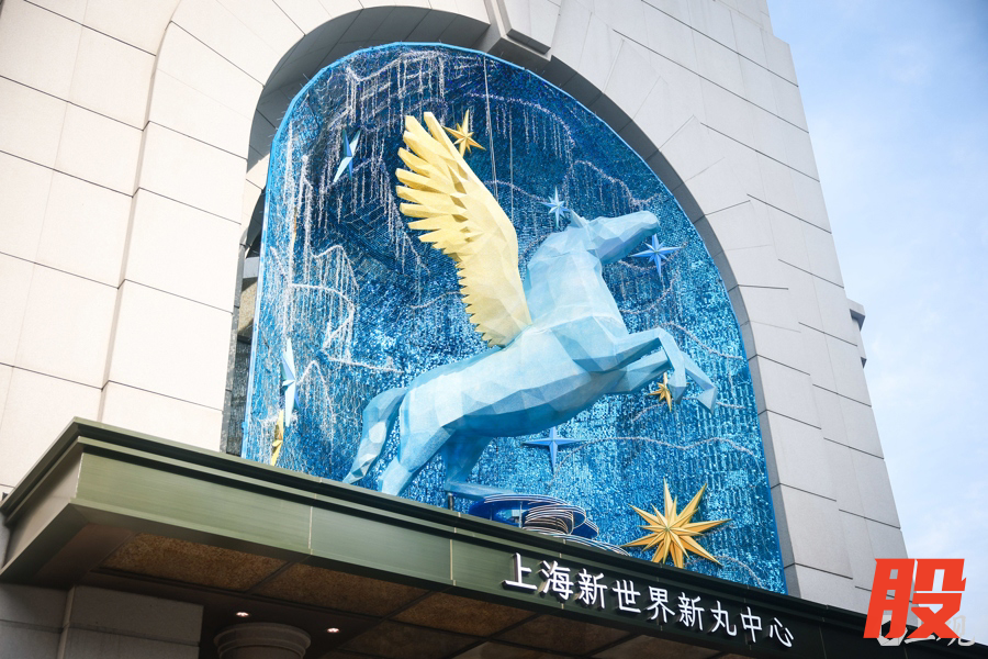 新世界新丸中心打造的大型艺术装置《星翼丙午》尤为亮眼,以古籍中象征“天驷”与光明的“星日马”为原型,将星图符号转化为兼具未来感与神圣感的实体作品,成为南京路马年氛围的标志性打卡点。